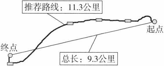 8. 小丰家准备自驾去某纪念馆。出发前,爸爸用地图软件查到导航路程为11.3公里。小丰用地图软件中的测距功能测出他家和目的地之间的距离为9.3公里,小丰发现他测得的距离比爸爸查到的导航路程少。用数学知识说明其中的道理 ______。