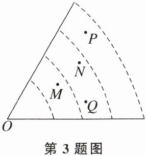 3. 体育课上,小明在点O处进行了四次铅球试投,铅球分别落在图中的M,N,P,Q四个点处,则表示他最好成绩的点是( )
