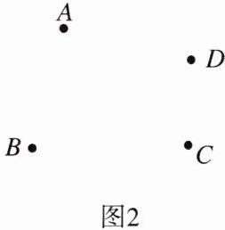 (2)如图2,设A,B,C,D为4个居民小区,现要在四边形ABCD内建一个购物中心,试问应把购物中心建在何处,才能使4个居民小区到购物中心的距离之和最小?请说明理由。