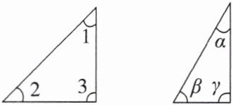 (2)因为∠1=∠2=45°,∠3=∠γ=90°,∠α=30°,∠β=60°,所以∠α<∠1=∠2<∠β<∠3=∠γ。