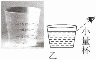 。按图乙所示量取10毫升药液,其实际量取药液的体积将小于