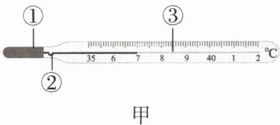 (填序号)结构使得体温计能离开人体读数。 (2)如图乙所示,药用量杯常用于家庭医疗护理,帮助患者准确量取药液或药粉,确保每次服用的剂量准确无误。药用量杯刻度的分布特点是