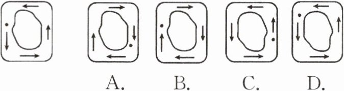 (4)如图所示,这是在显微镜下观察细胞质流动时所看到的物像(大圆表示液泡,箭头表示细胞质流动方向,小黑点表示细胞核),则实际上细胞核的位置以及细胞质流动的方向是(