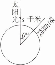 7. 早在公元前3世纪,古希腊学者埃拉托色尼就已经测量出了地球的周长,与现代科学公认的地球周长的真实值非常接近。埃拉托色尼在研究中发现,每年夏至日,埃及塞尼城(今为阿斯旺)正午的太阳光正好直射到城内一口深井的底部,而远在s千米以外的亚历山大城,夏至日正午的太阳光会使物体在地面上留下一道影子,埃拉托色尼又测得太阳光方向与竖直方向之间的夹角为θ°(如图所示),由此得出地球的周长为(