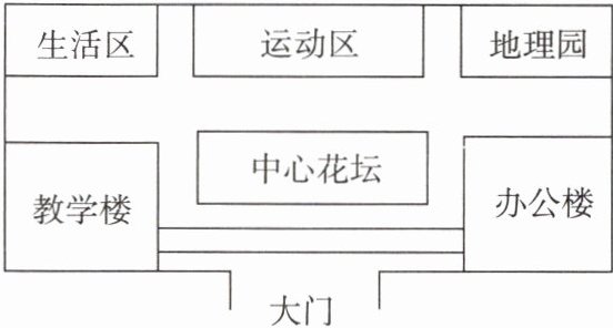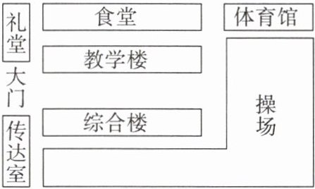 6. 小科为了能让远方来的朋友熟悉校园区域分布情况,画了如图所示的学校地图。请你仔细观察该学校地图后回答下列问题。