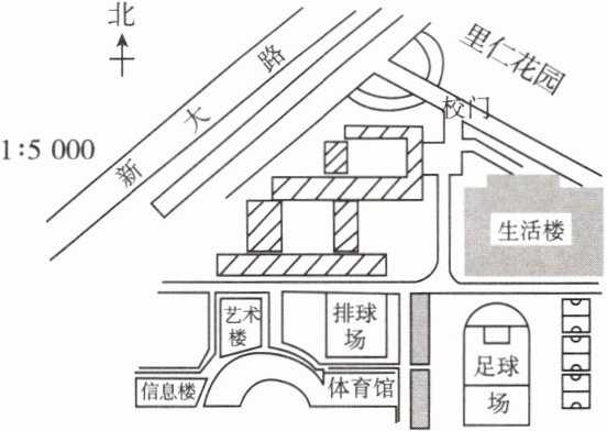 。(5)若生活楼到足球场的图上距离是1厘米,则实地距离是