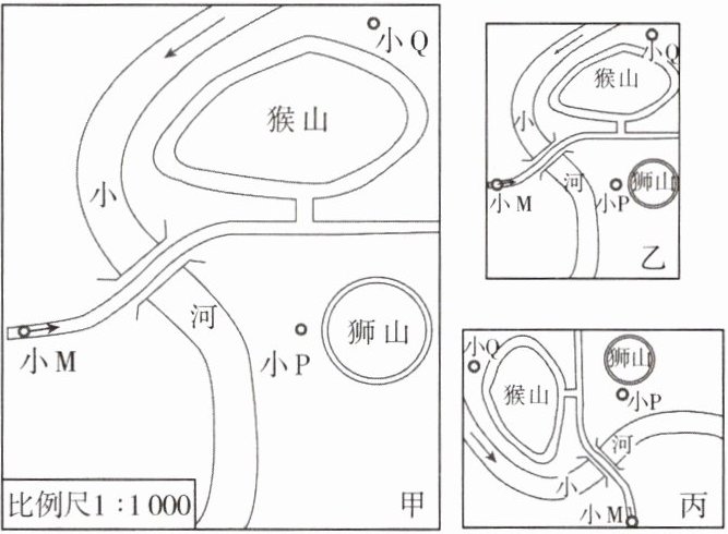(3)图甲中,小M沿着小路往前走,他走到什么地方正好在小P的北方?__________。