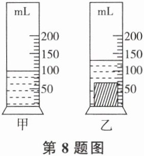 mL。(2)如图乙所示,测出水和合金块的总体积,记作$V_{2}$,为
