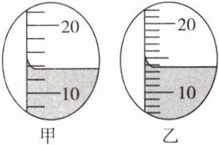 4. 甲、乙两个量筒的分度值不同,分别用它们来测量煤油的体积,如图所示(图中数字的单位是mL),读数分别是13.8 mL和13.9 mL。下列分析正确的是(