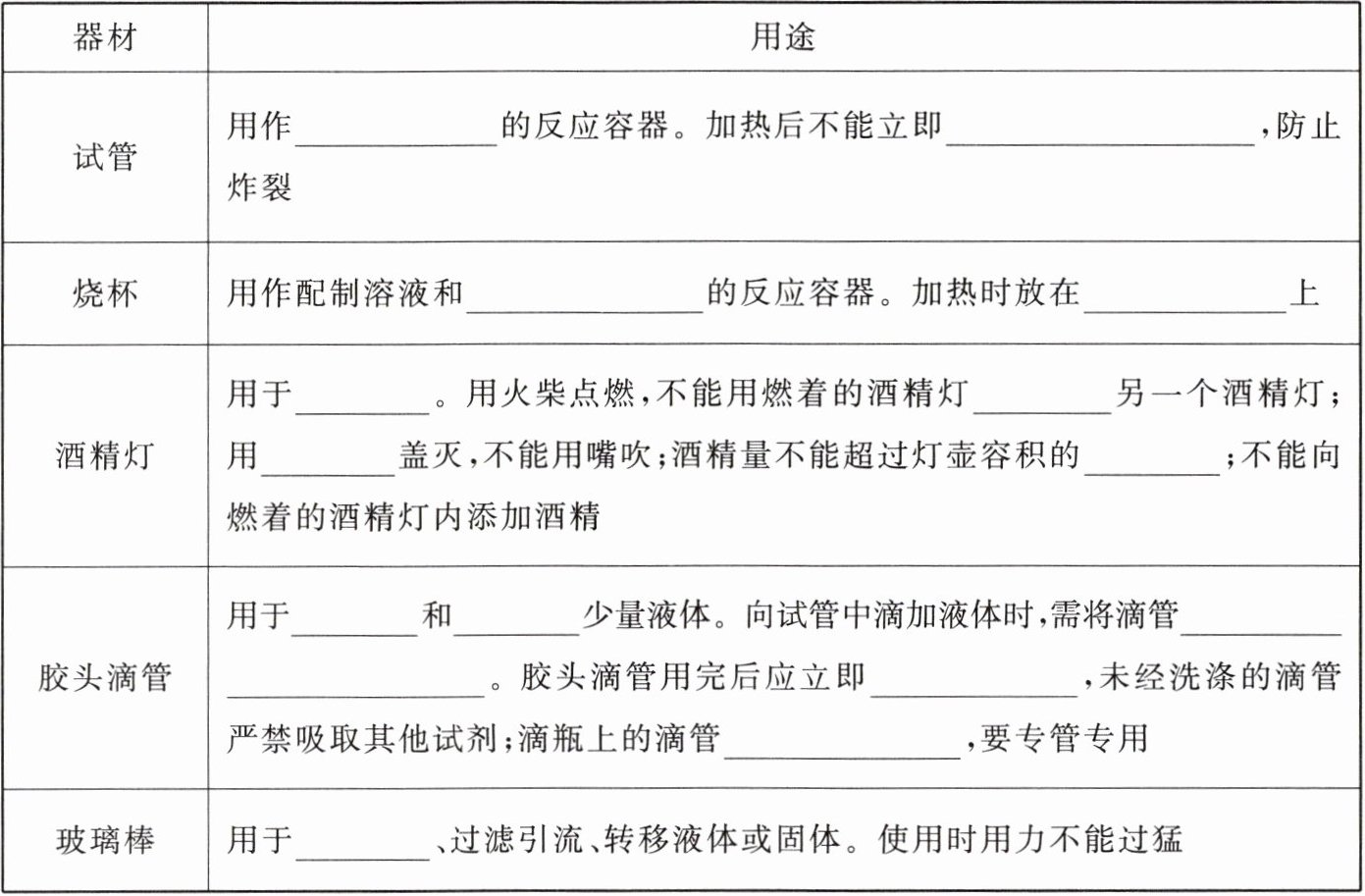 少量试剂;用冷水冲洗;较大量试剂;石棉网;加热;去点燃;灯帽;$\frac{2}{3}$;吸取;滴加;垂直悬空在试管口上方;用水冲洗干净;不用清洗;搅拌