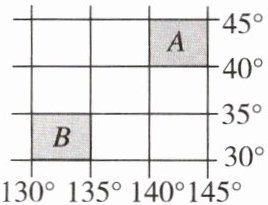 1. 如图所示,这是地球仪上经纬网中的一部分,其中阴影A与阴影B的面积大小关系是 (