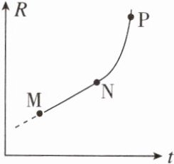 5. 宇宙大爆炸理论认为,宇宙起源于138亿年前的一次大爆炸。除开始瞬间外,在演化至今的大部分时间内,宇宙都是膨胀的。若标志宇宙大小的宇宙半径R和宇宙年龄t的关系如图所示,图中MN为直线,NP为向上弯曲的曲线,则 (
