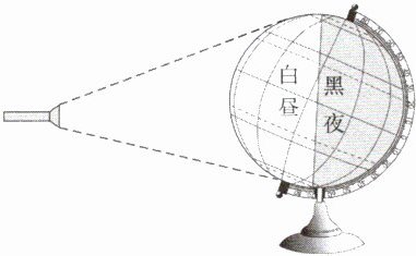 2. 在一间暗室里,小科用手电筒的光线模拟太阳光照,按如图所示方向转动地球仪,演示地球运动,该实验演示的现象是(