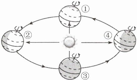 2. 如图所示,地球在自转的同时,还在公转轨道上沿①→②→③→④绕着太阳公转。下列说法中正确的是(