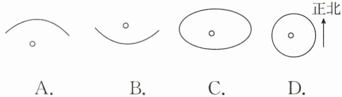 3. 在杭州市的一天中,旗杆杆顶影子所留下的轨迹最有可能是下列选项中的(