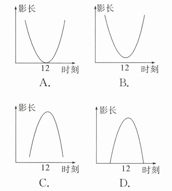 5. 我国广东省汕头市西郊有座汕头北回归线标志塔,其刚好坐落在北回归线上。它既是景点,又是科研基地。夏至日,北回归线标志塔一天之内影长变化的图像为(