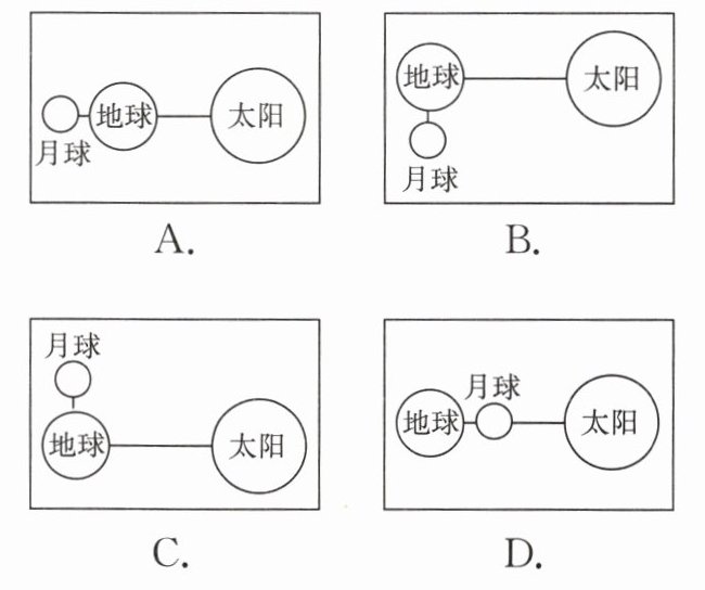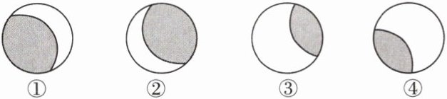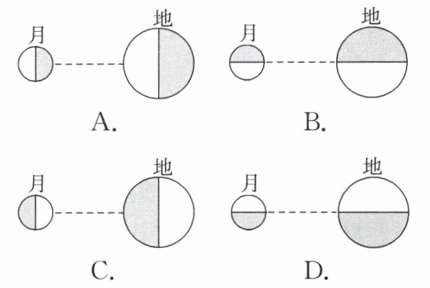 4. 下列地月位置关系图中(白色为光照面),地球上的观测者有可能看到月食现象(月球进入地球影子而变暗的现象)的是 (