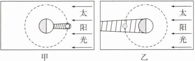 D.甲图表示日食的成因,乙图表示月食的成因