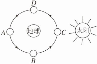 (A 地球 C 太阳 B D)