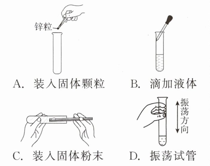 )A.打开试管夹,从试管底部往上套,夹在试管中下部