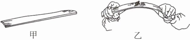 实验过程:水平拿起竹片→两手握住竹片两端并加力,使竹片向上弯曲变形→持续加力,竹片弯曲加剧,弯曲处出现竹纤维崩裂撕开的现象(如图乙所示)→加大力度,竹片折断,折断瞬间,两手有震感。