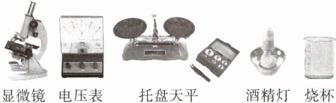 显微镜 电压表 托盘天平 酒精灯 烧杯