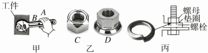 (3)在许多工件上还要垫一个与D螺母作用不同的弹簧垫圈(如图丙所示),以防止工件振动时螺母的松动,其原因是