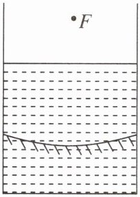5. 如图所示,把一个反射面向上的凹面镜放在容器内,在凹面镜的焦点F处放一点光源S,然后向容器内注入水,使水面处于焦点F和凹面镜之间,要使点光源S射到凹面镜的光仍平行射到空气中,则点光源S的位置应( )