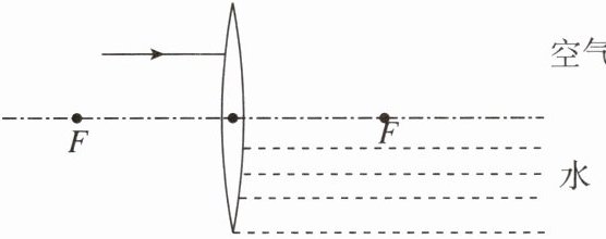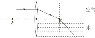 (2)如图所示,一束光经凸透镜折射到水中,请作出折射光路图。