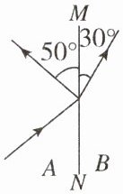 10. (6分)如图所示,MN是两种均匀介质的分界面,已知两种介质的其中一种是空气,当光从介质A射到介质B时,入射角等于______,折射角等于______,其中介质______是空气。