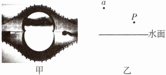 5. 小明在景区拍摄的拱形桥照片如图甲所示,图乙是其简化图,P点为站在岸边的小明眼睛的位置,a是拱形桥的顶点。请根据要求作图。
