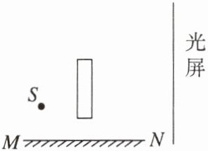 6. 作出点光源S通过平面镜MN照亮不透明物体右侧地面或光屏的范围。