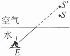 3. 如图所示,在平静的湖边有一盏路灯标记为S,潜水爱好者在水下E处看到路灯的像为S'。