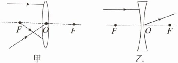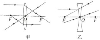 【例5】如图所示,根据凸透镜、凹透镜的特点补全入射光线、折射光线。