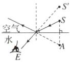 (1)请画出水下E处的人看到路灯S的入射光线。