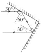 4. 根据自行车尾灯的反光原理,请完成下图所示的反射光路,并标出反射角度数。