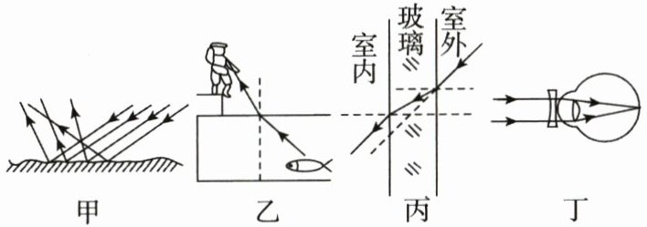 5. 光的反射和折射在生活中应用广泛,小吴画了4幅图,其中错误的是(