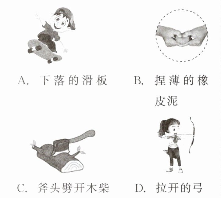 3. 以下是我们生活中常见到的几种现象:①篮球撞击在篮板上被弹回;②用力揉面团,面团形状发生变化;③用力握小球,小球变瘪了;④一阵风把地面上的灰尘吹得漫天飞舞。在这些现象中,物体因受力而改变运动状态的是( )
