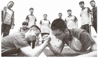 8. 如图所示,师生间开展掰手腕活动。假设学生对老师的力为$F_{1}$,老师对学生的力为$F_{2}$,若学生获胜,则下列关于两力的大小关系正确的是( )