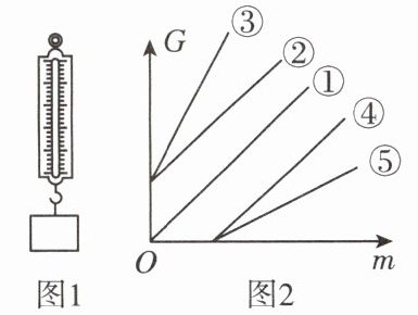 (1)如图1所示,甲探究小组的一位同学用弹簧测力计测量钩码所受重力大小,读数时他让钩码保持静止状态,此时钩码所受的重力大小和它受到的拉力大小相等。他分别测出几个钩码的重力大小后,根据实验数据得出结论:物体所受重力的大小与它的质量成正比。