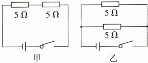 4. 在科技节上开展电路设计活动,要求同时满足两个条件:①电路包含电源、开关、导线、两个电阻;②通过两个电阻的电流相等。小柯设计的图甲、乙所示的电路中,符合要求的是(