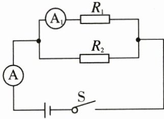 2. 如图所示,已知电阻$R_1= 3\ \Omega$、$R_2= 6\ \Omega$,电流表A的示数是0.6 A,则电流表$A_1$的示数是(