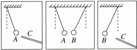 3. A、B是两个轻质泡沫小球,C是用丝绸摩擦过的玻璃棒,A、B、C三者之间相互作用的场景如图所示,由此可以判断(