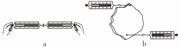 8. 在“探究二力平衡的条件”实验中,应保持物体处于静止状态或______状态,探究两个力大小、方向和______的关系,下图中符合探究目的的是______(填“a”或“b”)。