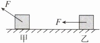 9. 如图所示,某工人用大小相等的拉力F,沿不同的方向分别拉动物块甲、乙,使其在相同的水平面上做匀速直线运动。下列说法正确的是( )