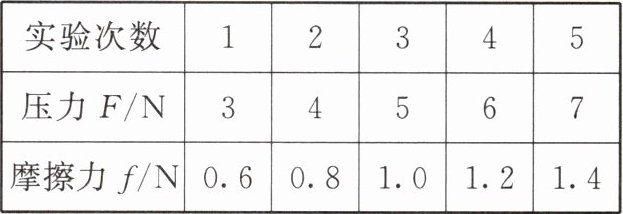 | 压力F/N | 3 | 4 | 5 | 6 | 7 |