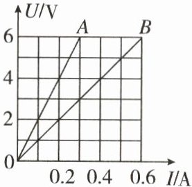 18. (5分)A、B两定值电阻的U-I图像如图所示,由图中信息可知,通过A电阻的电流为0.2 A时,A电阻两端电压为