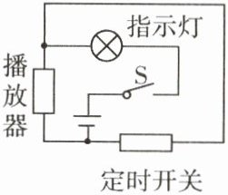 (2)一种定时课间音乐播放装置的原理图如图所示,“播放器”是有电流通过时会播放音乐的装置;“定时开关”是到达设定时间,自动断开的开关。闭合开关S,当“定时开关”处于闭合状态时,指示灯