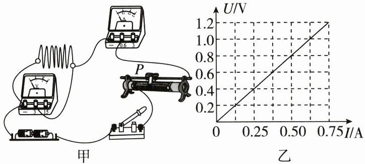 (填“左”或“右”)端。 ②小科通过移动滑片P,测得多组数据,绘制成U-I关系图像,如图乙所示,据此可以判定这卷铜芯漆包线的实际长度