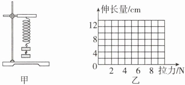 (1)请你在图乙中用描点法画出弹簧伸长量和拉力F的关系图像。